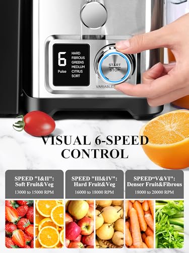 Healnitor 1100W 6-Speed Digital Screen Centrifugal Juicer Machines Vegetable and Fruit, Juice Extractor with 3.5″ Big Wide Chute, Easy Clean, BPA-Free, High Juice Yield, Silver