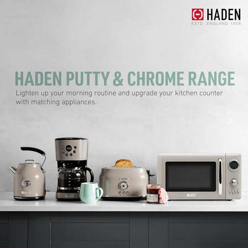 Haden 700 Watt 0.7 Cubic Foot Microwave Oven with Digital Controls, Defrost, and Instant Start Countertop Small Appliance, Putty/Chrome