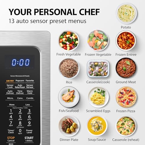 One Kitchen Appliance, Better Texture Combines microwave and convection cooking in one appliance, with auto bake, defrosting and auto roast menus. Also with pre-programmed sensor menu for optimum result of popular foods like frozen pizza, vegetables and more