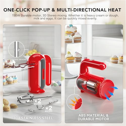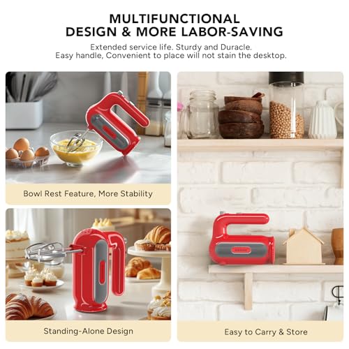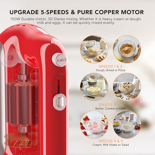 Specification: Hand Mixer Electric, 5-Speed Small Handheld Mixer, 2* (304 Dough Hooks & 304 Whisks) Food Blender, Kitchen Blender for Baking, Cream, Cookies, Dishwasher Safe