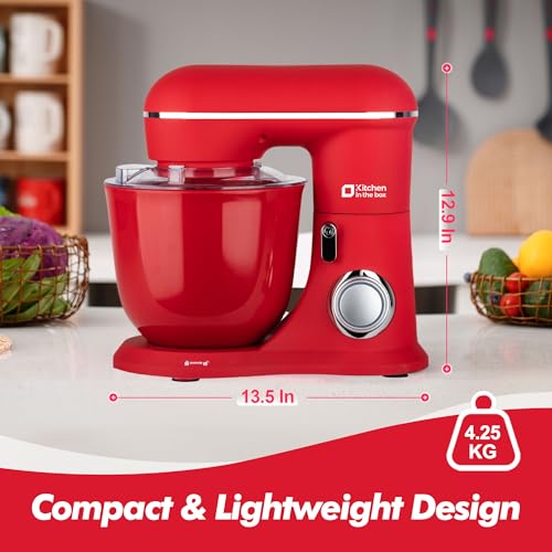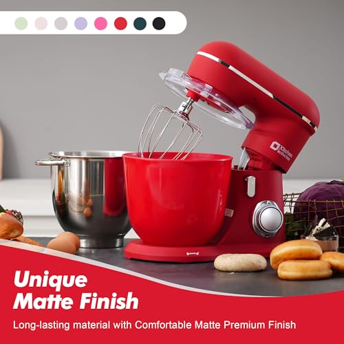 Kitchen in the box Stand Mixer, 4.5QT+5QT Two bowls Electric Kitchen Mixer, 10 Speeds Matte Finish Mixer for Daily Use with Egg Whisk,Dough Hook,Flat Beater (Matte Red)
