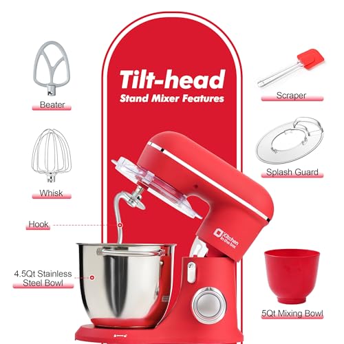 Specification: Kitchen in the box Stand Mixer, 4.5QT+5QT Two bowls Electric Kitchen Mixer, 10 Speeds Matte Finish Mixer for Daily Use with Egg Whisk,Dough Hook,Flat Beater (Matte Red)