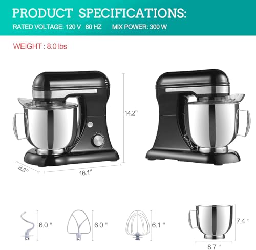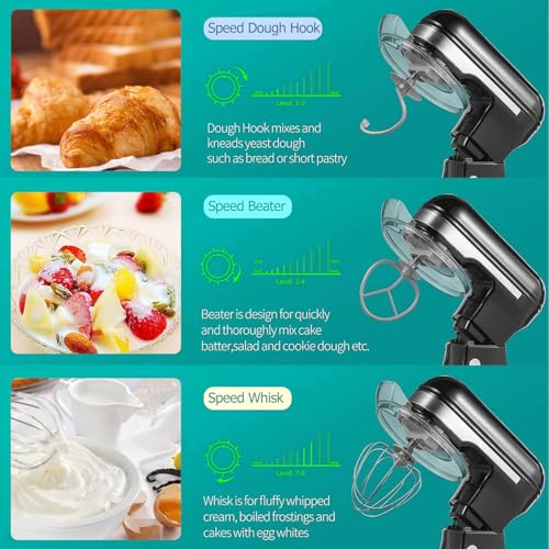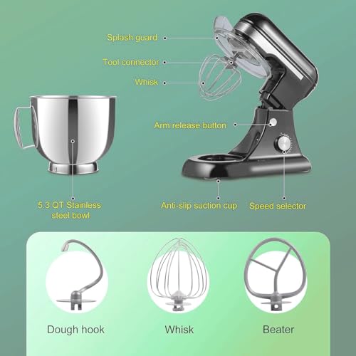 Specification: Kitchen Stand Mixer,5.3QT Electric Food Mixer,12 Speeds Portable Lightweight Kitchen Mixer for Daily Use with Egg Whisk,Dough Hook,Flat Beater (Black)