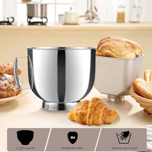 Accessories Included: Comes with a stainless steel bowl and multiple attachments like a whisk, dough hook, and beater.