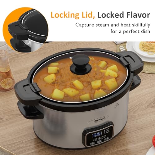 Tailored Cooking: The time settings range from 30 mins to 12 hrs for low settings, and from 30 mins to 10 hrs for warm and high settings. Customize each dish with specific cooking temperatures and durations for optimal results. Plus, the digital display offers clear countdowns, ensuring precision in your cooking process.