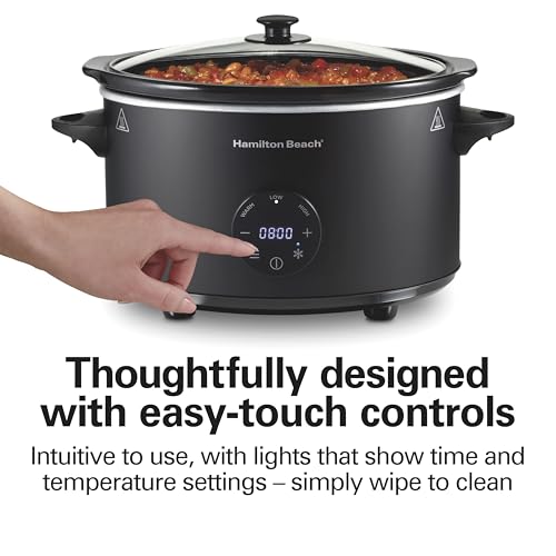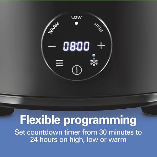 Specification: Hamilton Beach 6 Quart Set & Forget Programmable Slow Cooker with Defrost Function, Flexible Programming, Adjustable Countdown Timer, Large Dishwasher Safe Stoneware Crock and Glass Lid, Black (33765)
