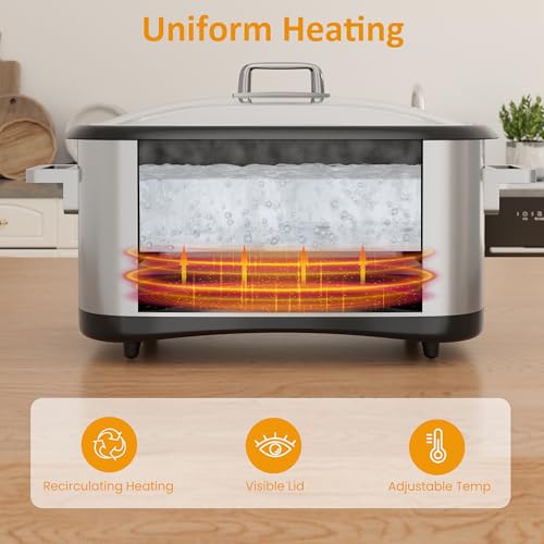 Non-Stick Inner Pot: With an aluminum alloy inner pot, this large slow cooker enables faster and more even heat conduction, ensuring perfectly cooked meals. Additionally, it prevents food from sticking to the surface, making both cooking and cleaning significantly easier.