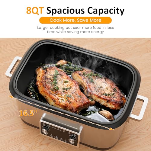 Perfect for Large Meals: Crafted with an ample 8-quart capacity, this digital slow cooker easily serves 10+ people. Whether you’re grilling meats, pan-frying steaks, baking breads, or slow-cooking gumbo, it’s versatile for various culinary tasks. Perfect for hosting dinner parties or crafting gourmet feasts for your family.
