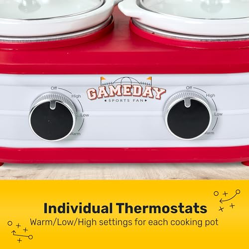 Specification: Nostalgia Game Day 2.5-Quart 2-Section Slow Cooker with Lid and Ladle, Keg-Like Design, Cooks Chicken Wings, Meatballs, Chilli, Cheese, Soup, Stews, and More