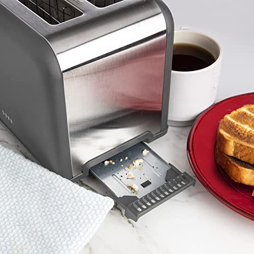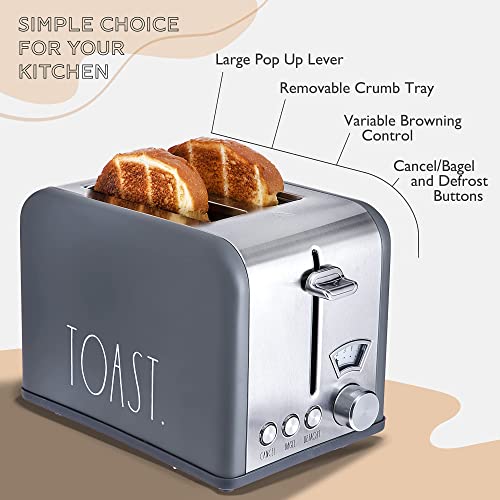 Rae Dunn Toaster, Stainless Steel 2 Slice Square Toaster, Wide Slot with 5 Browning Levels, with Bagel, Defrost and Cancel Options (Grey)