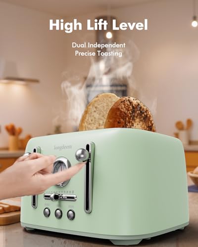 Intelligent 6-Level Customization: Engineered for gourmet kitchens, the LONGDEEM 4-Slot Toaster offers 6 browning presets and Bagel/Defrost modes, mastering thick sourdough, frozen waffles, and chewy bagels with one-touch precision