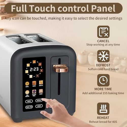 LCD Display & Full Touch Control: This wide-slot toaster features a vibrant LCD display that allows you to easily monitor bread type, browning level, and remaining toasting time. With a full touch control panel, you can effortlessly select your desired settings for perfect toast every time.