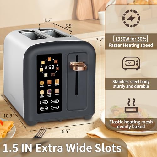 Specification: SEEDEEM Toaster 2 Slice, Full Touch Control Stainless Toaster, LCD Display, 50% Faster Heating Speed, 6 Bread Type, 7 Shade Setting, 1.5”Wide Slots, Removable Crumb Tray, 1350W, Dark Chocolate