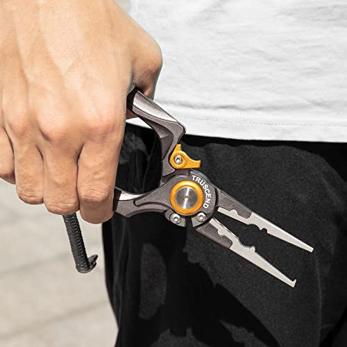 Specification: TRUSCEND Lockable Handy Fishing Pliers with Innovative Ergonomical Handle, Corrosion Saltwater Resistant Teflon Coated Fishing Tool, Multi-Function Fishing Gear with Mo-V Cutter, Fishing Gifts for Men
